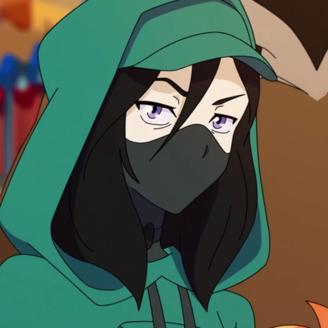 Elle porte un sweat-shirt à capuche bleu sarcelle foncé à manches courtes, par-dessus un pull à col roulé noir à manches longues. Le sweat-shirt possède une grande poche centrale et des cordons noirs assortis à son pantalon bleu sarcelle foncé retroussé jusqu'aux genoux. Ses bas sont noirs et ses mocassins noirs sont ornés de languettes blanches. Elle complète sa tenue avec des mitaines noires, un ras-de-cou orné d'une pierre plus foncée et un masque noir qui lui couvre la bouche.