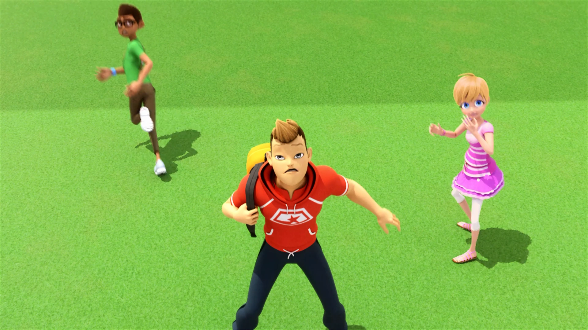 Au stade, Cœur de pierre retrouve Kim et s'apprête à l'attaquer quand il est stoppé par le bâton de Chat Noir. Kim s'enfuit et Chat Noir occupe Cœur de Pierre, esquivant ses coups. Papillon se réjouit de voir que les Miraculous du Chat Noir et de la Coccinelle sont de retour. Chat Noir frappe Cœur de pierre avec son bâton, renforçant Cœur de pierre pendant que Marinette, terrifiée, n'ose pas intervenir. Cœur de pierre arrache une cage de foot et la lance sur Chat Noir qui l'esquive mais celle-ci se dirige droit sur Alya qui filme le combat. Chat Noir la sauve en se servant de son bâton mais il est attrapé par Cœur de pierre. Alya remarque Marinette, l'appelant "Coccinelle-girl", et l'encourage à combattre.