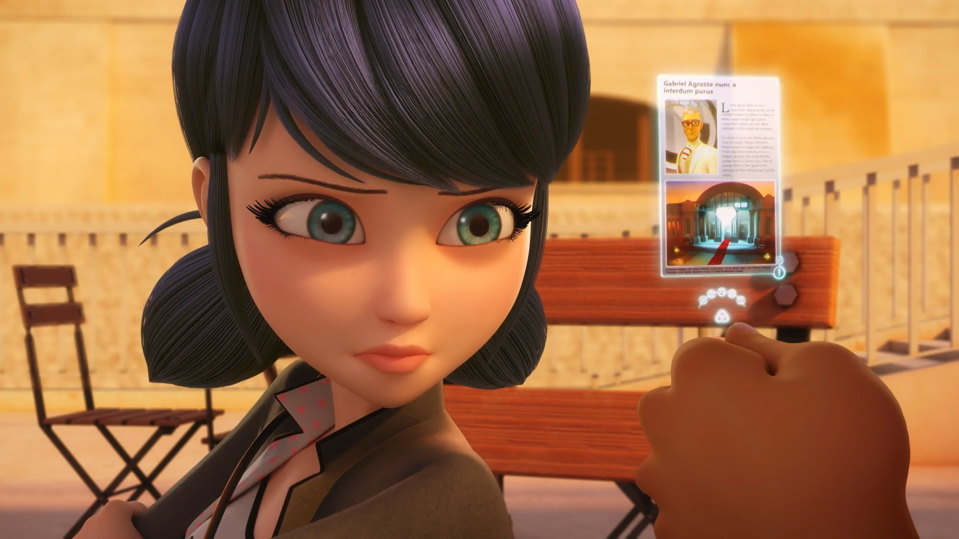 In preda al panico, Adrien si gira rapidamente e spiega a Marinette che dovrebbe incontrare suo padre, quindi non può stare con lei, anche se Marinette dubita che questa sia la verità. Dopo che Adrien se ne va, la confusa Marinette si rivolge a Tikki, chiedendole se Adrien sembrasse comportarsi in modo strano. Tikki scrolla le spalle, dicendo che si comportano sempre in modo strano l'uno con l'altra.