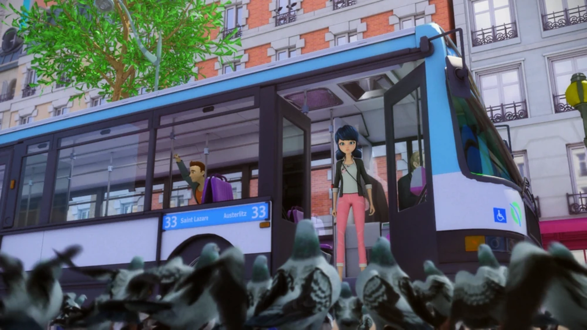 Mentre Marinette è sull'autobus, chiede all'autista perché non possono andare più veloci. L'autista dice che hanno una situazione e dice alle persone di scendere dall'autobus. Marinette vede che i piccioni stanno causando l'ingorgo, insieme ad altri problemi in tutta Parigi. Nadja, su uno schermo vicino, fa un rapporto sui piccioni ed è poi ha detto che Mr. Piccione farà un annuncio: Parigi appartiene ai piccioni. Marinette, senza perdere tempo, corre nella metropolitana per trasformarsi in Ladybug.