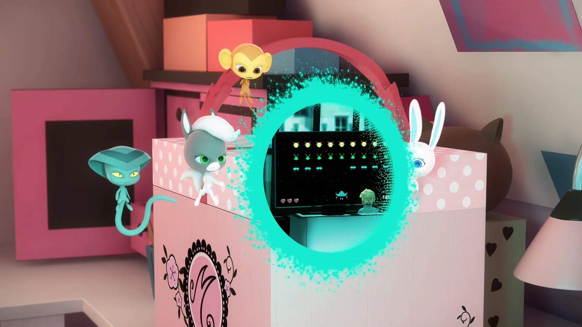 Monarcha używa Bon Voyage, aby przenieść się do pokoju Marinette.