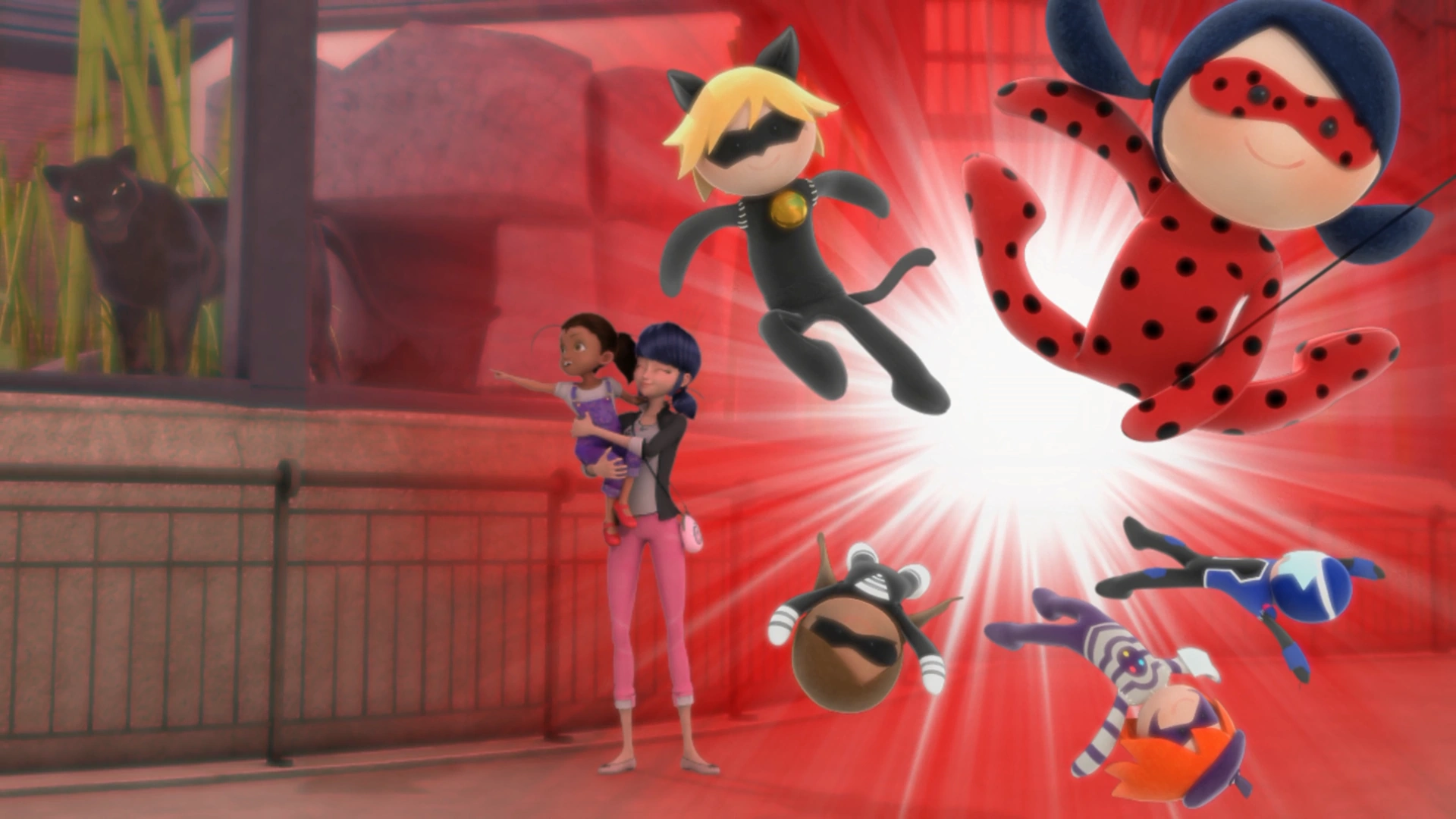Następnego dnia Marinette przeprasza Nadję za wcześniejsze wydarzenia przyznając się do swojej winy. Kobieta żegna się z córką pozostawiając ją pod opieką dziewczyny. Kiedy Manon chce pobawić się lalkami Biedronki i Czarnego Kota Marinette odmawia i proponuje wycieczkę do zoo. Dziewczynka zgadza się na propozycję swojej opiekunki i wybiega z pokoju.
