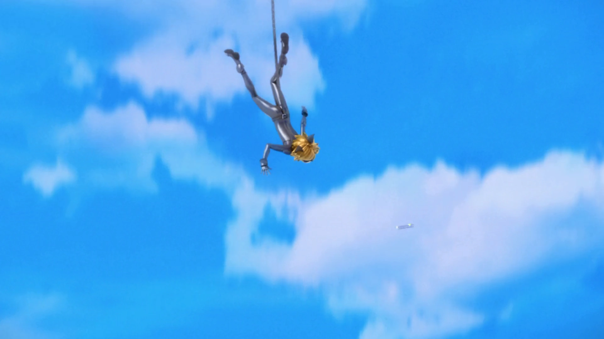 Cat Noir pega seu bastão enquanto cai. Ladybug o salva usando o ioiô amarrado a um poste, deixando-o pendurado de cabeça para baixo. Ele agradece e tenta beijá-la, mas ela o solta, dizendo que ele a retribuirá depois.