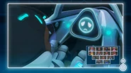 After Bugfighter trapped Cosmobug, she instructed Claudie, who was undetectable by Bugfighter, to break the Space Jet’s windshield with an emergency hammer and disable key components of the A.I. manually. Claudie's actions made Bugfighter realize that Claudie was still in the space jet, leading Bugfighter to realize that Monarch tricked her. Bugfighter then rejected the megakuma.