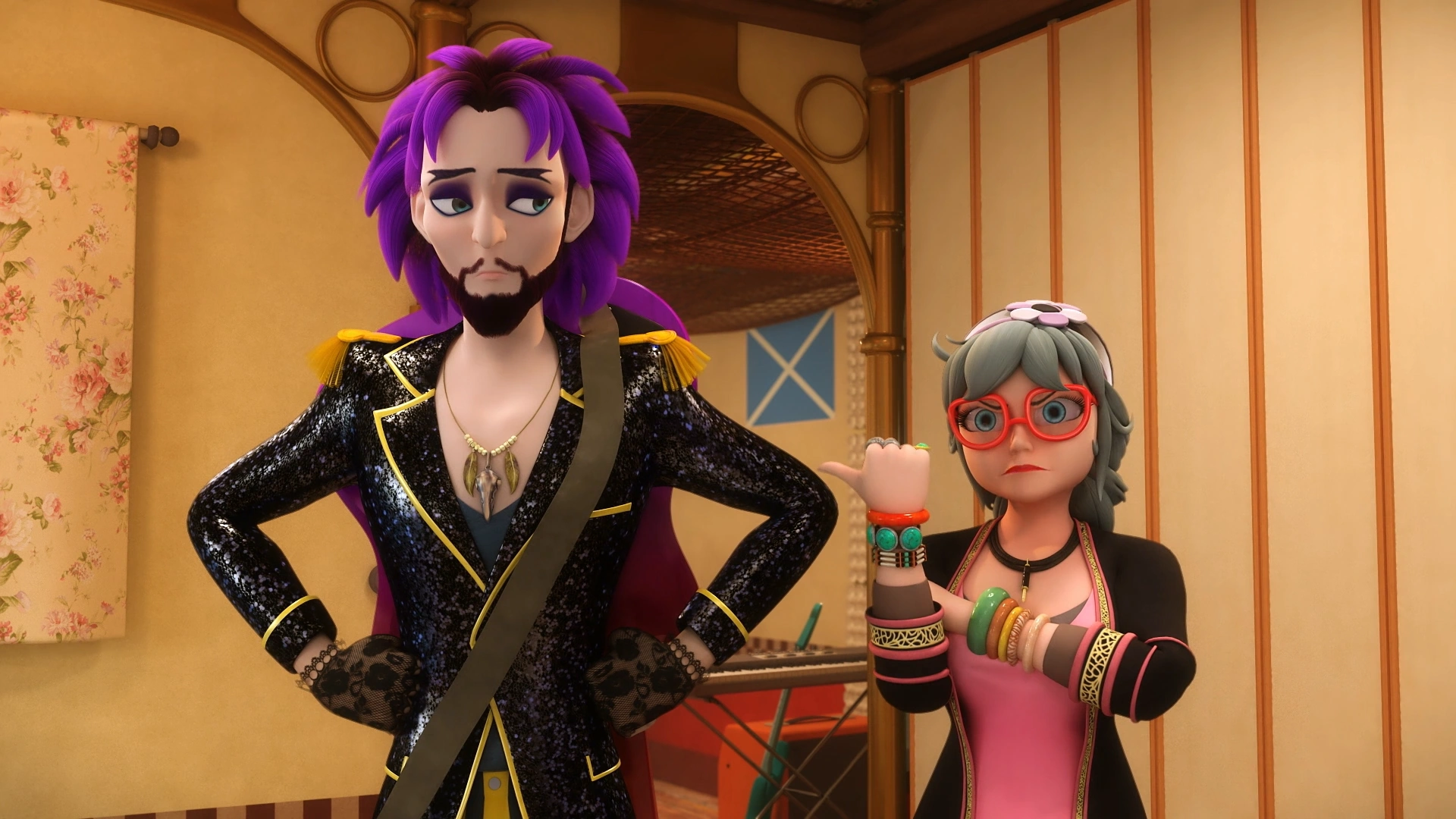 In "Crocoduel", she still harbored a grudge against him and didn't like it when he came on board her ship without permission. Later in the episode, it is revealed that their first album as a croco-duo was the reason they broke up. After being deakumatized, Juleka yelled at them to listen to each other, prompting them to reconcile; however, they started to argue again over who was in the wrong.