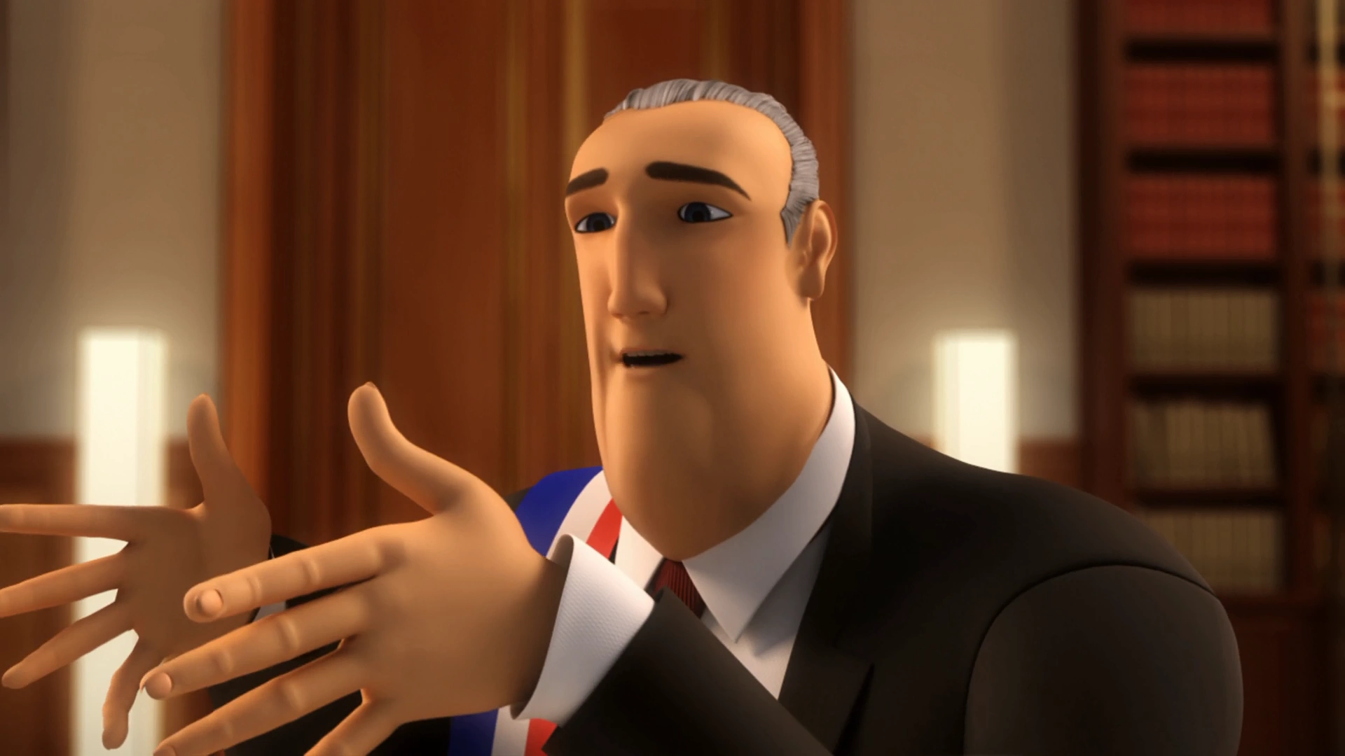 In "Malediktator", after his wife and daughter tried to leave Paris and called him powerless despite his position, André was akumatized by Hawk Moth into Malediktator, a dictator supervillain.