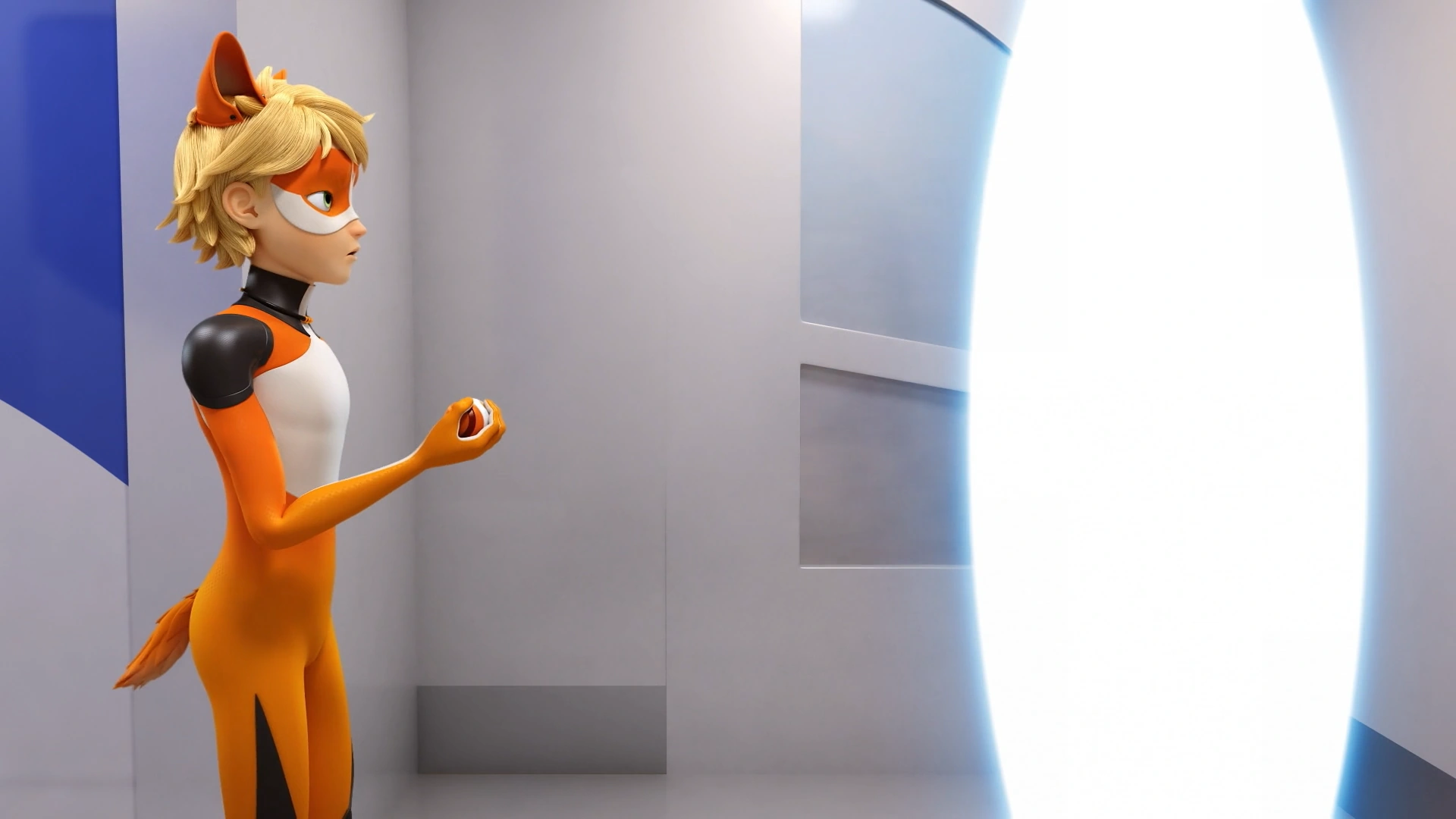 Unified Rabbit Miraculous holder telling their teammates that they can't seem by anyone while in the past.