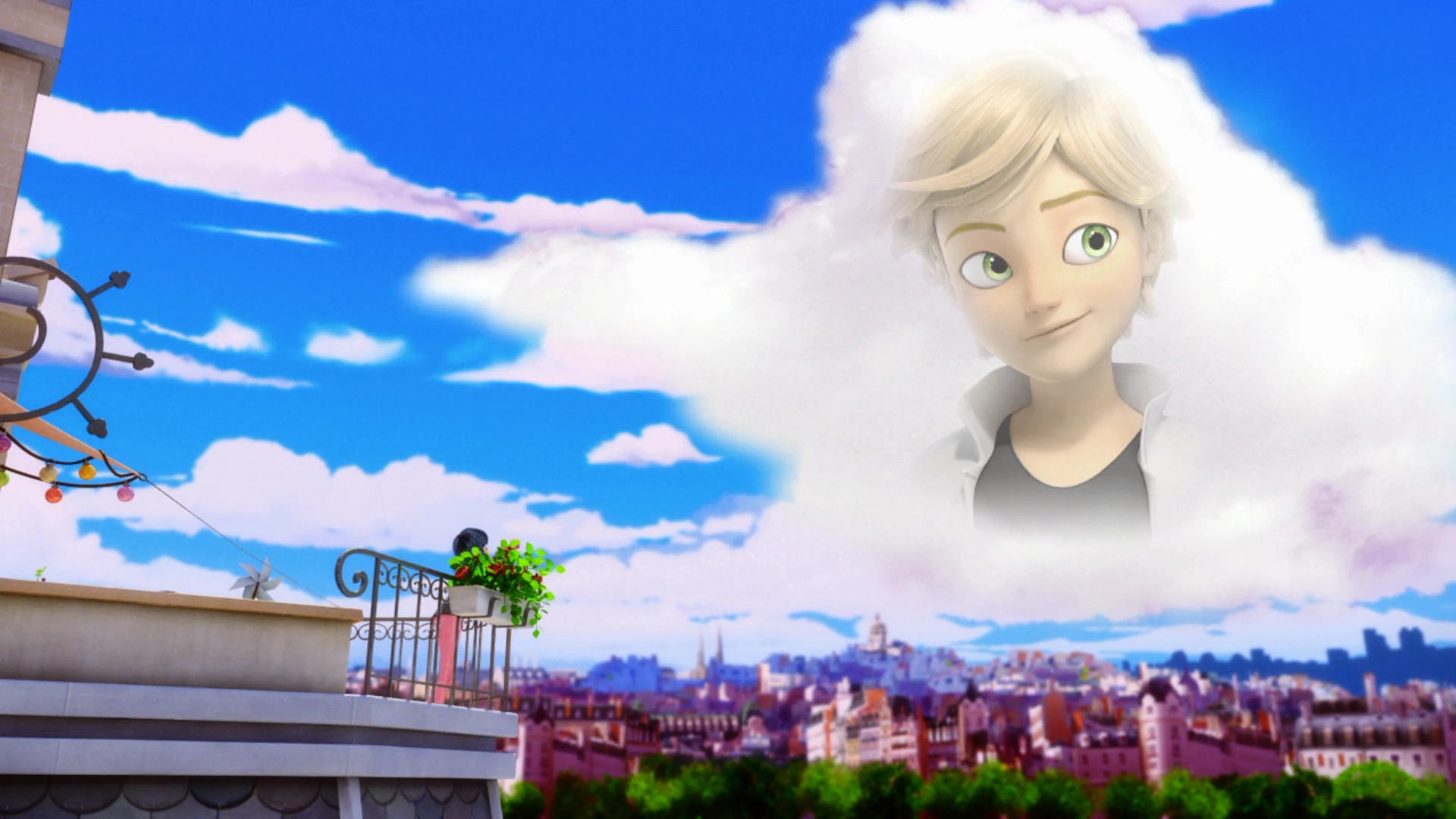 Marinette is on the balcony of her house, talking to Tikki about Adrien. Whenever Marinette tries to talk to him, she can't say anything. Tikki suggests talking to him on her cellphone, and Marinette calls Alya to ask for Adrien's number.