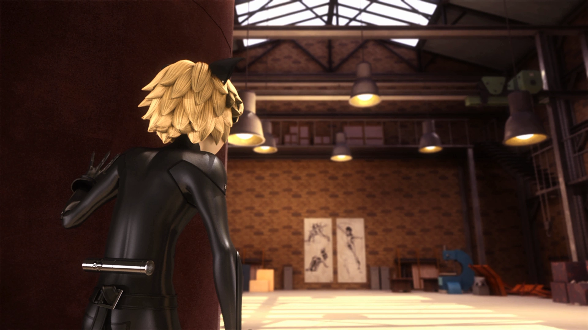 Cat Noir arrives at Théo's studio and calls Ladybug, letting her know that he found Copycat's hideout. She asks where he is, but Cat Noir decides that—since this situation is his fault—he has to handle it alone so he doesn't tell her where he is before hanging up. Ladybug uses the tracking device in her yo-yo to find him.