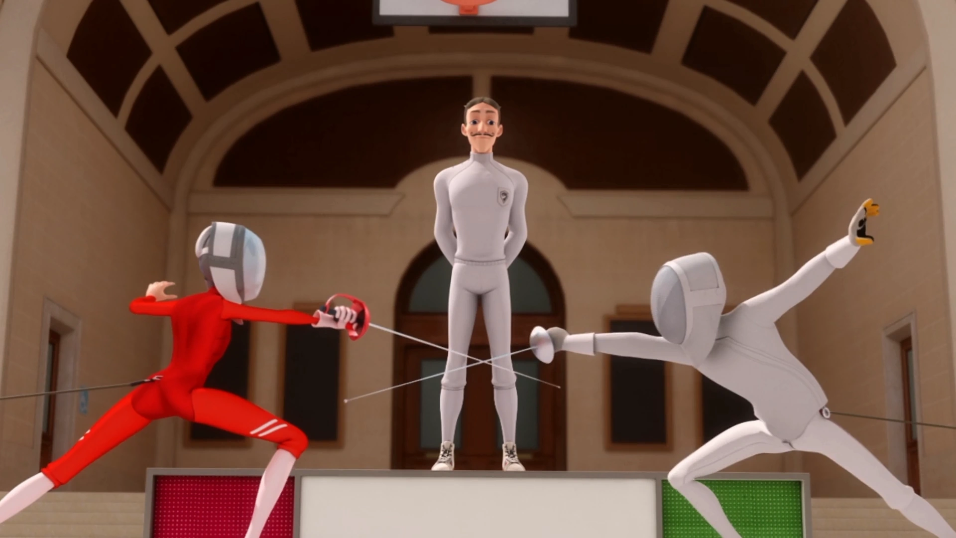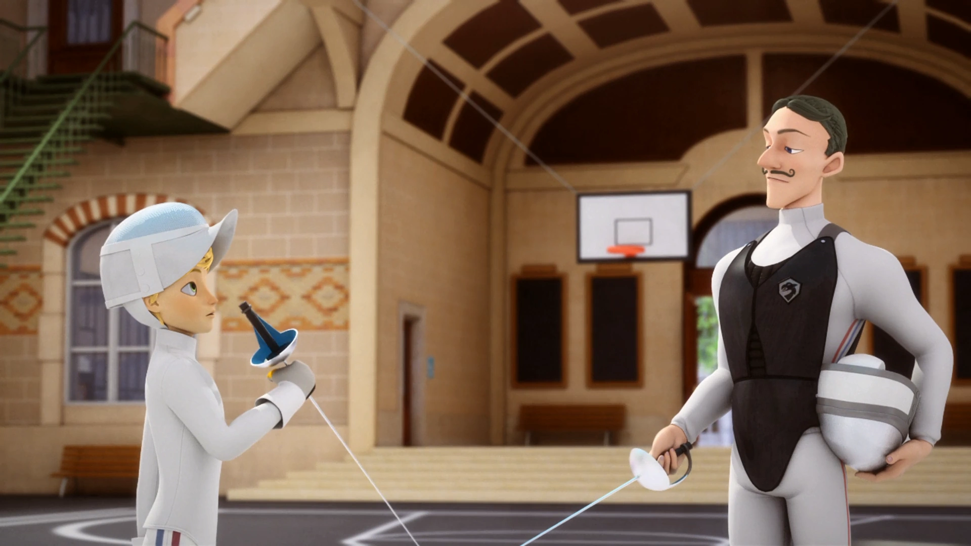 | Adrien and Kagami's Duel | Kagami, having not signed up for the tryouts, asked to participate, claiming to be an expert fencer. Accepting Armand's offer, she was pitted against the academy's best, Adrien. They began their duel with the scoring machine, but at Kagami's request, they continued without it, fighting throughout the school until Adrien won in the library. |