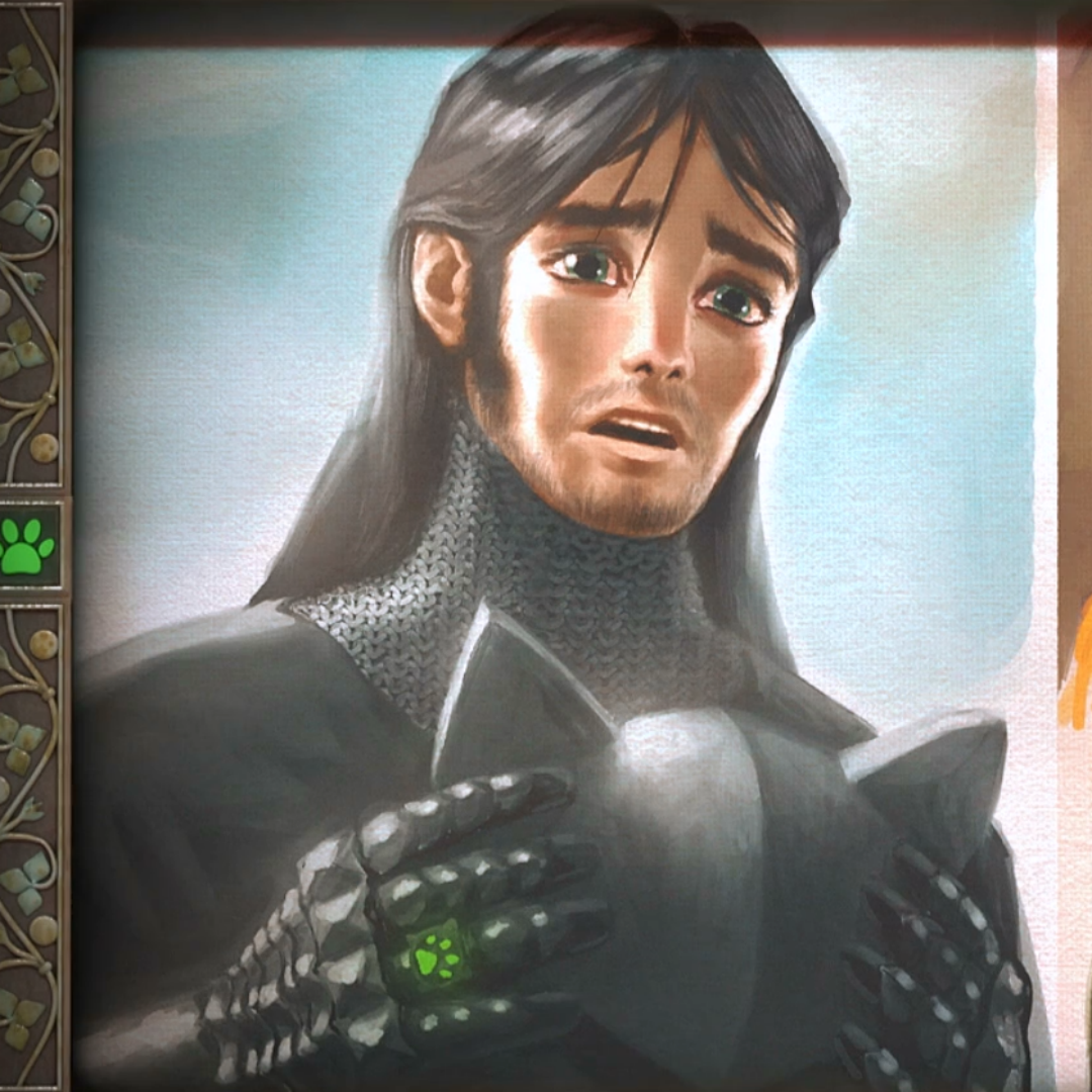 Dark Grimalkin is a young strong-looking man with long, black hair, sideburns and a stubble.