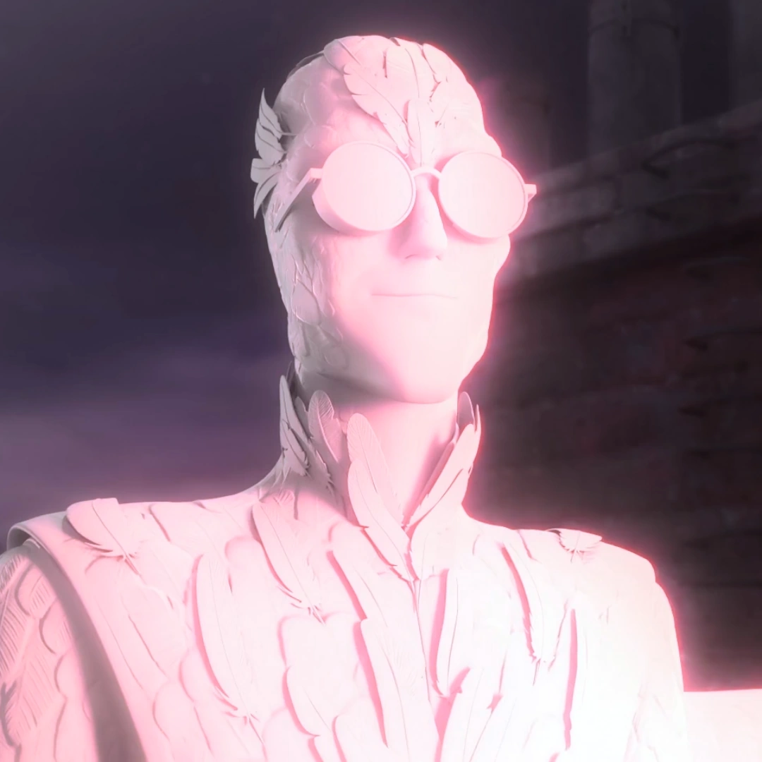 Guardian Angel was similar to Gabriel in appearance, but with his body and clothes appearing to be made entirely of white feathers. He was seen wearing a tailcoat and had big white wings and completely white eyes. His kamikotized object, his glasses, seemed to be the only part of his form not made of feather.