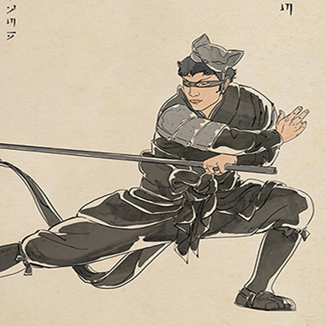 Hēi Māo had black hair. He wore a black mask over his eyes and a black hat with two cat ear-shaped tips. His outfit was a black tunic and trousers that ended shortly below his knees, with layer gray armored plates over his right shoulder and upper arm. Also, he wore black cloth over his lower legs and black shoes, and a long black sash, like a cat's tail, came off his back.