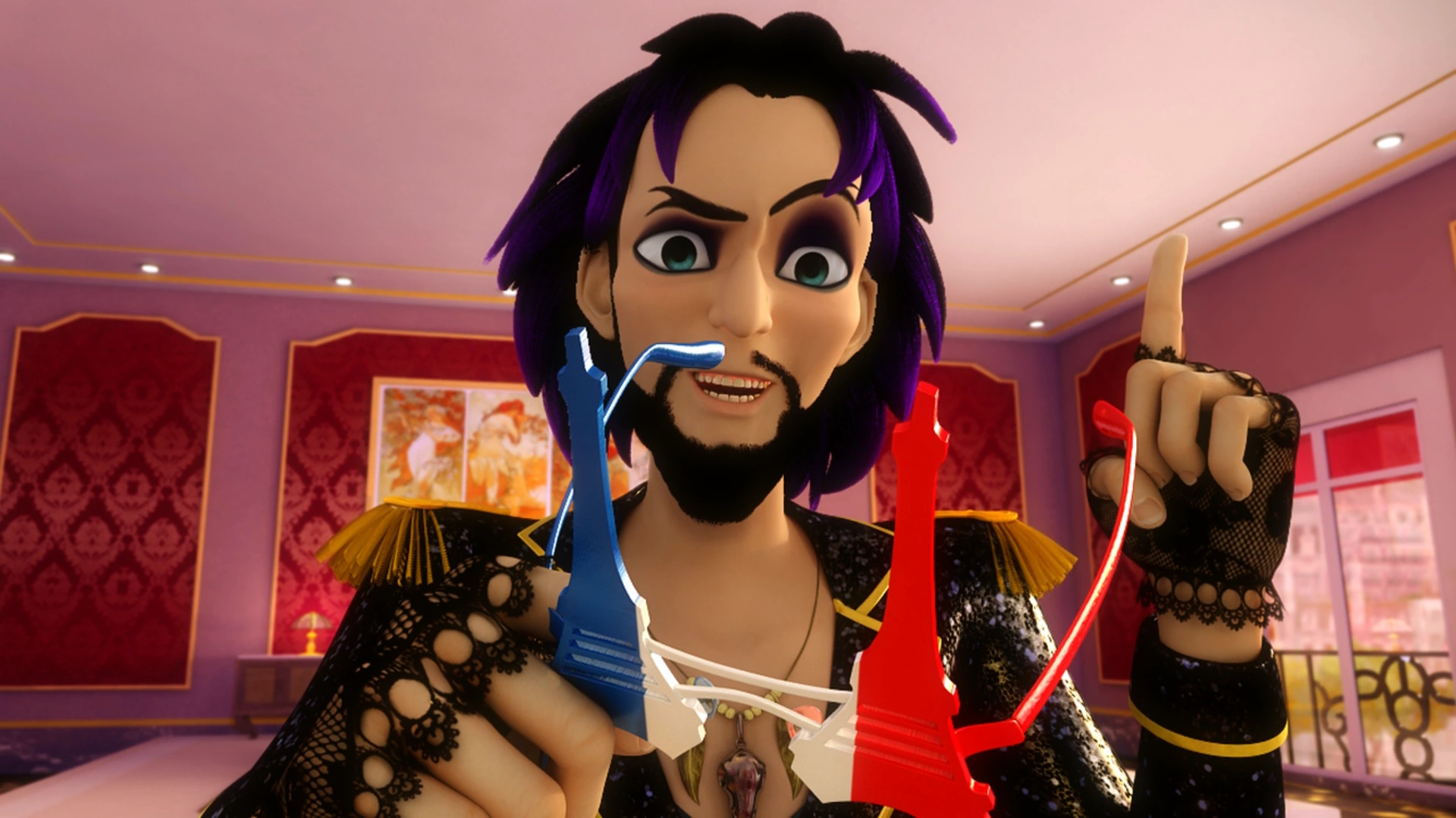 - Jagged Stone is so amazed by the glasses and how they represent his style that he asks Marinette to design his new album cover in "Guitar Villain".