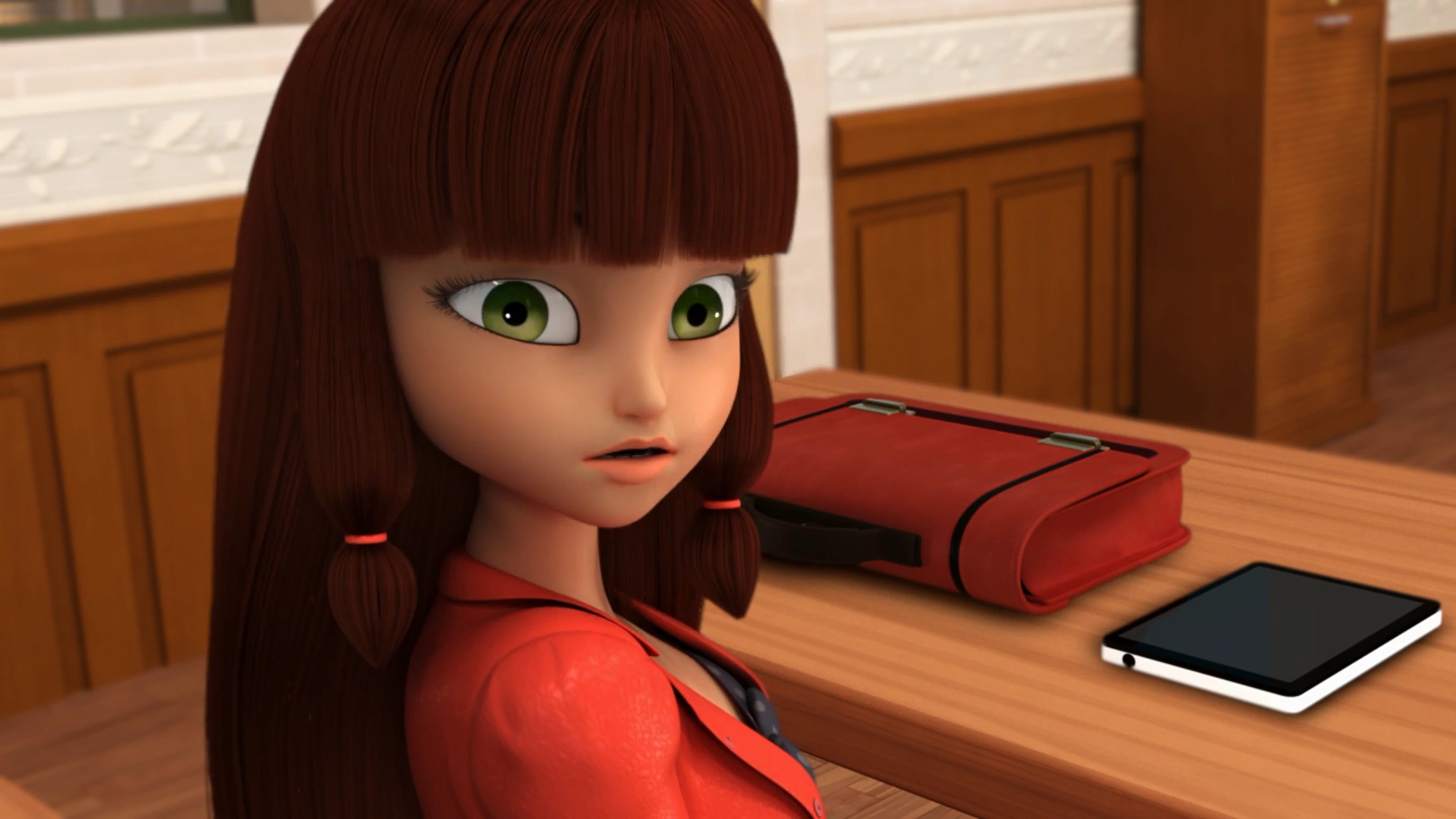- In "Chameleon", when Lila first entered the classroom she didn't have a folder, but suddenly she got one when she sat down at the desk and put her folder on it. When Adrien offered to sit behind it, the folder disappeared. After Lila feigned sadness for causing so much trouble, the folder reappeared.