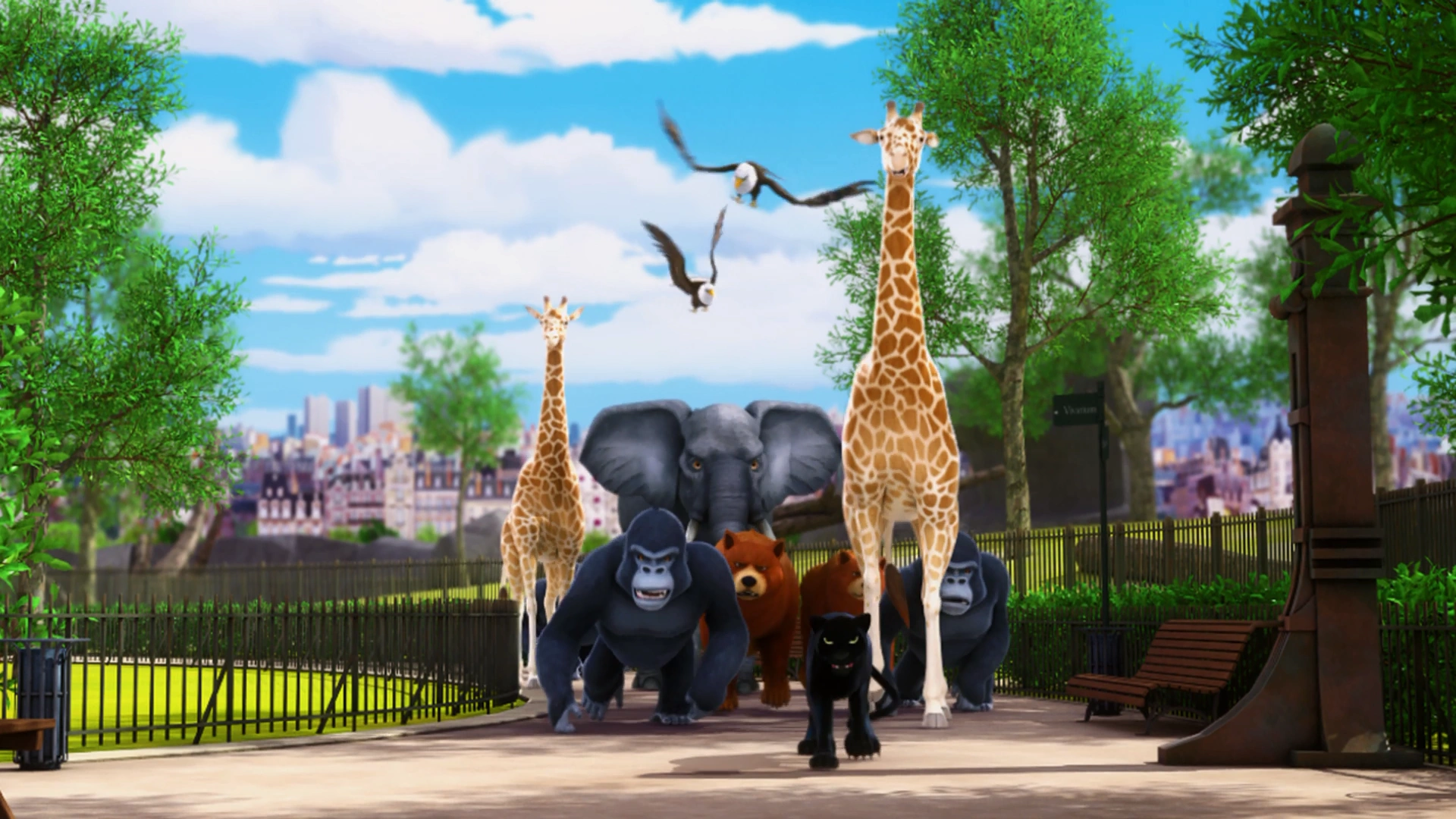 Gorillas are an exhibit at the Ménagerie du Jardin des Plantes zoo located in Paris. In "Animan", after Otis is akumatized into the titular villain, he releases the gorillas. During their time out of the cages, the gorillas mess around in the Métro. A gorilla also appears at the beginning of "Syren".