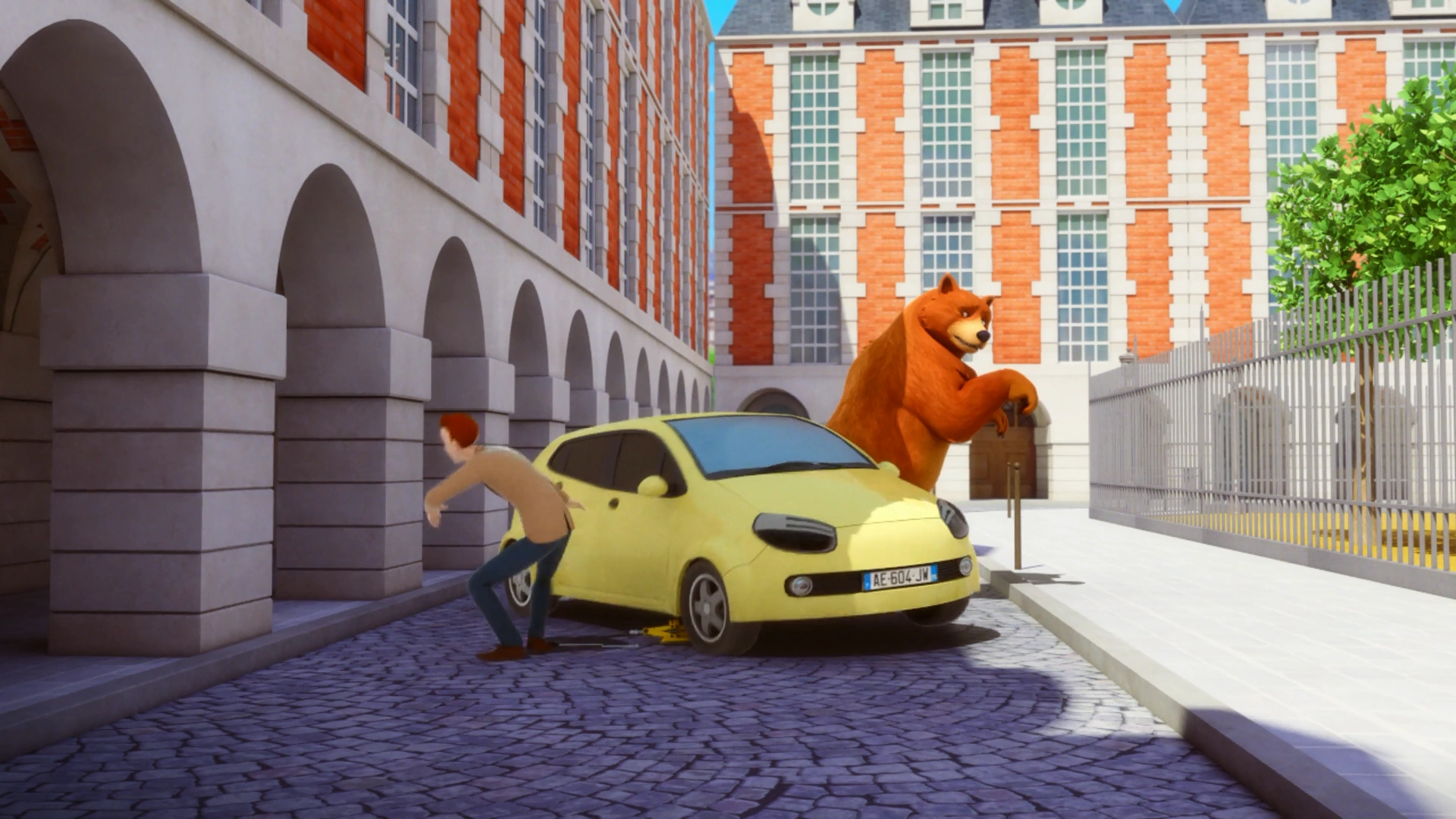A bear is in an exhibit at the zoo in Ménagerie du Jardin des Plantes. When Otis is akumatized into "Animan", he releases the bear. While free, the bear uses a car as a back scratcher (a reference to the Jungle Book) while its owner is trying to prop it up with a carjack. While akumatized, Otis also turns into a bear form to fight against Ladybug and Cat Noir.