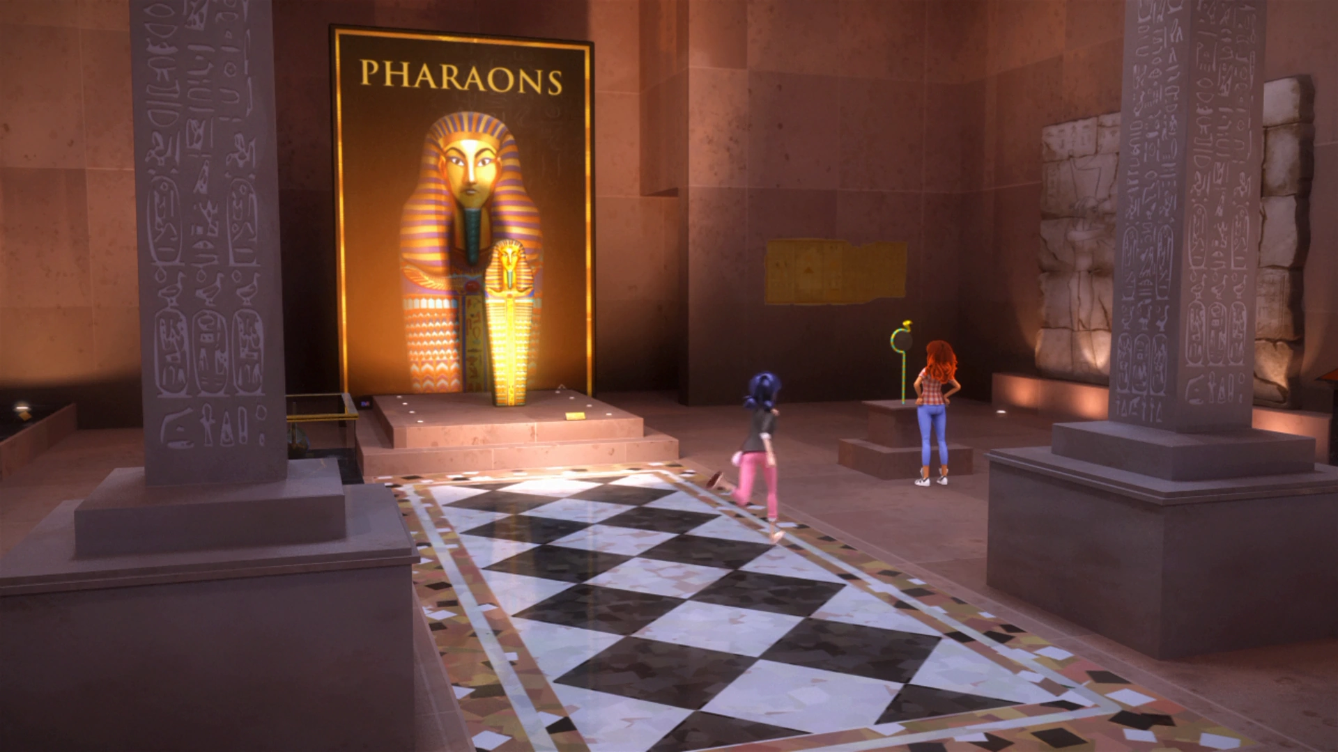 - In "The Pharaoh", while Marinette and Alya went there to see the Egyptian exhibit, Jalil was akumatized and fought Ladybug and Cat Noir inside and outside the museum.