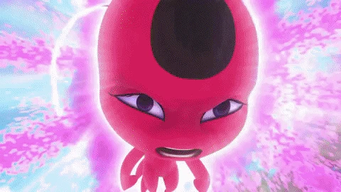Whenever Tikki uses her Lucky Charm, she is surrounded by a pinkish aura that is then turned into a tornado of pink energy, while a winged humanoid manifestation is formed above her. All that is then turned into a concentrated beam that starts to create anything Tikki wants.