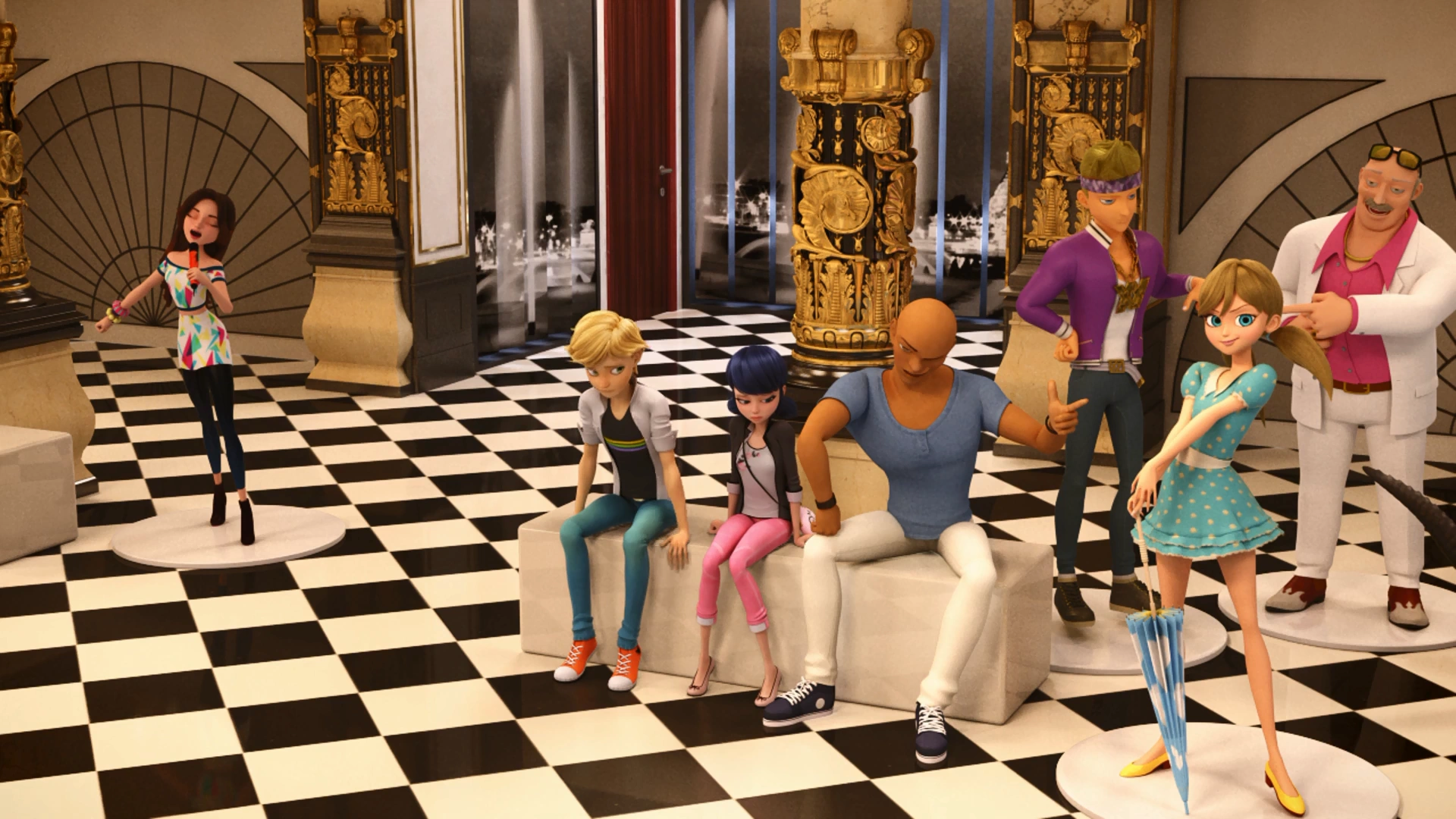 The villain statues were later replaced with statues of the Miraculous superheroes.