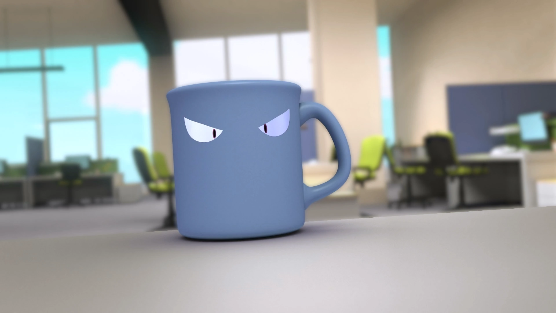 When Optigami merges with a mug, most of its body is not visible except it's eyes.