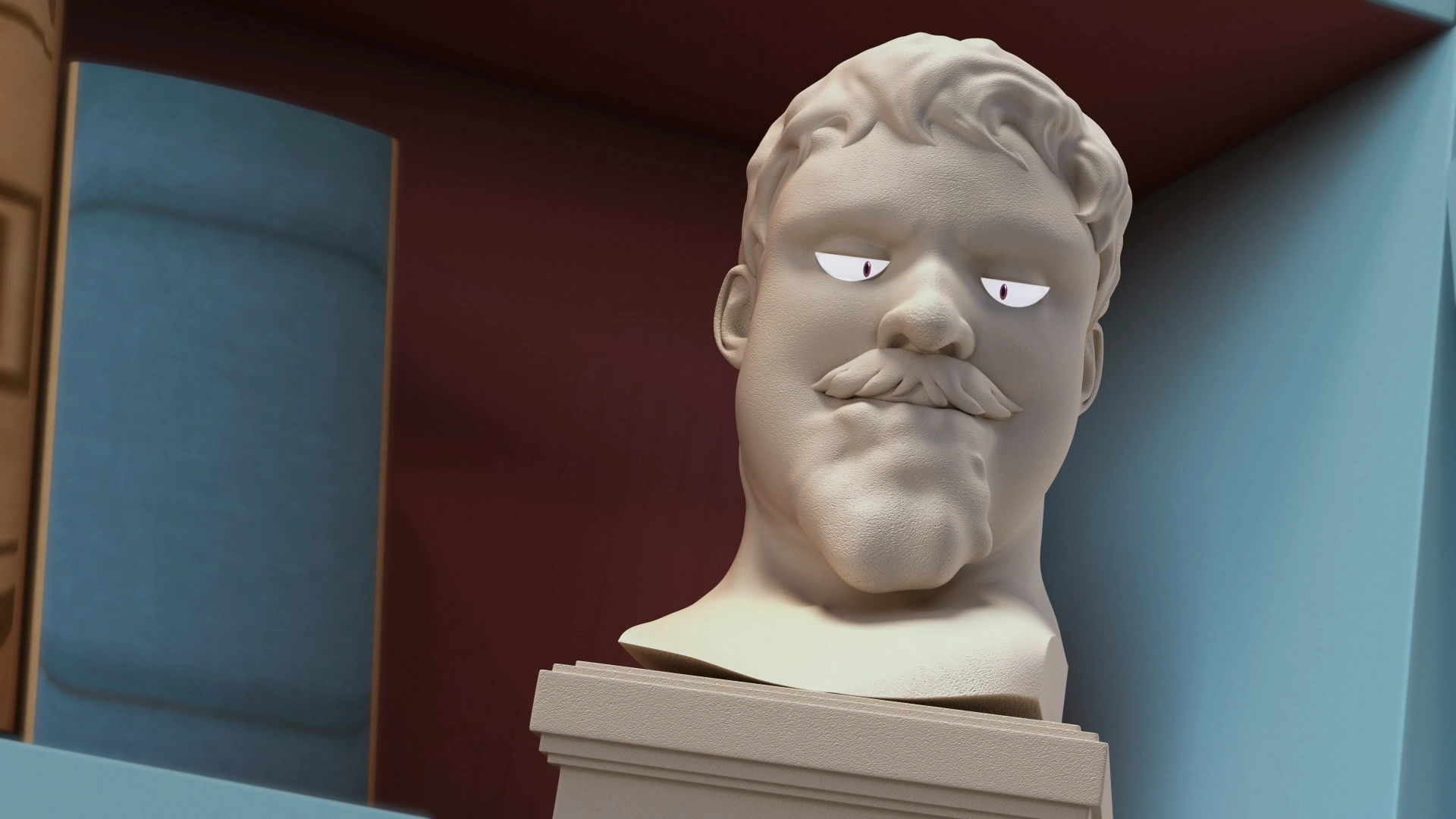 When Optigami merges with the head of a human statue in art classroom , most of its body is not visible except it's eyes.