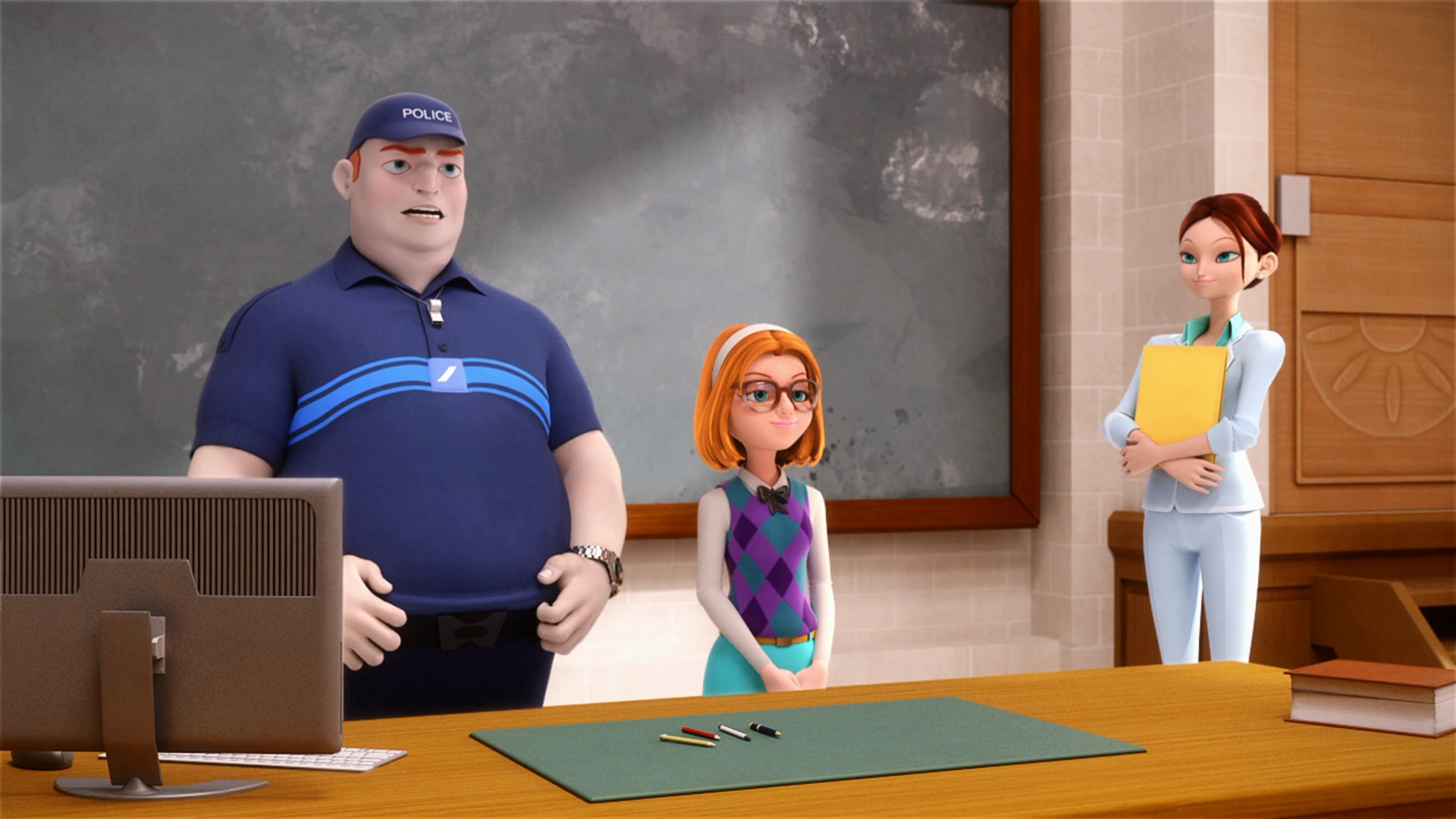 Roger and Ladybug arguing about Cat Noir's innocence.