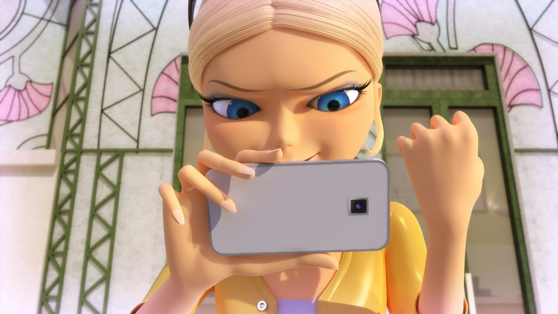 - She video calls Chloé while searching for secrets to use against Marinette for the class representative election in "Darkblade".