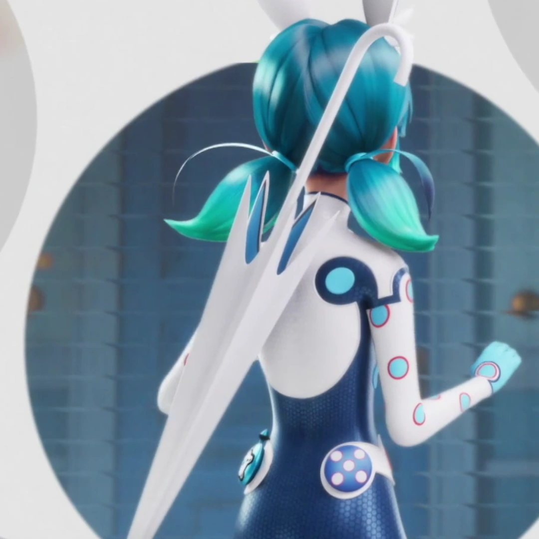 Like the other Miraculous tools, the umbrella is nearly unbreakable. When closed, the umbrella can be used like a bat or sword. When opened, it serves as a shield or a parachute in mid-air. When pressing the end off the handle, an earpiece pops out.